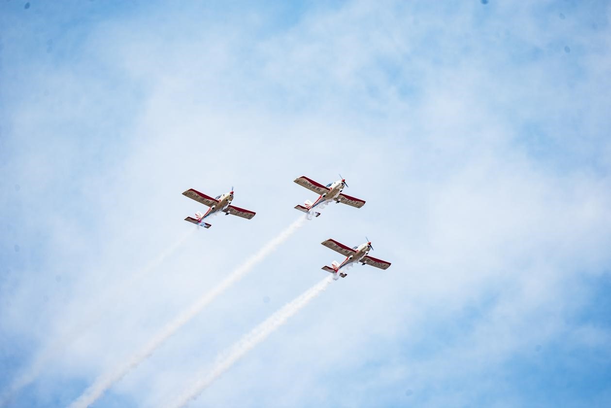 应用两大展区,覆盖通航产业全产业链,为上中下游企业搭建高效的供需对接平台。动态飞行表演在株洲芦淞机场举行,编排了固定翼飞机、旋翼机编队表演,直升飞机应急救援实景应用演练,航模表演,动力伞表演,热气球系留升空表演等,山河科技制造的民族自主品牌轻型运动型飞机